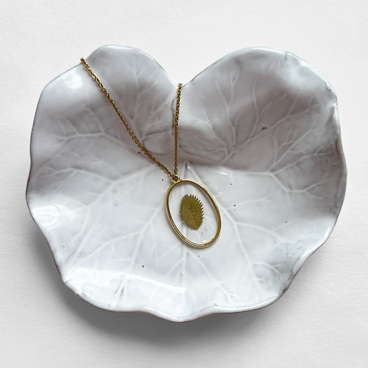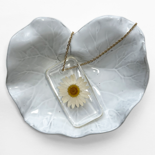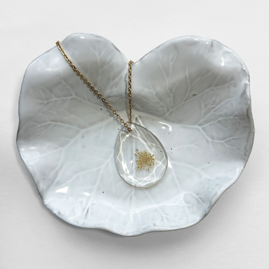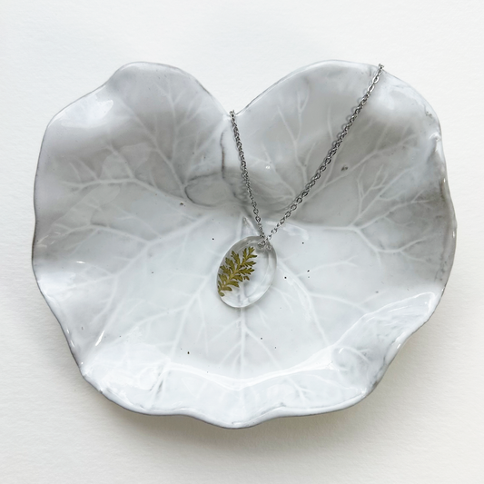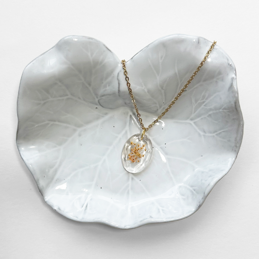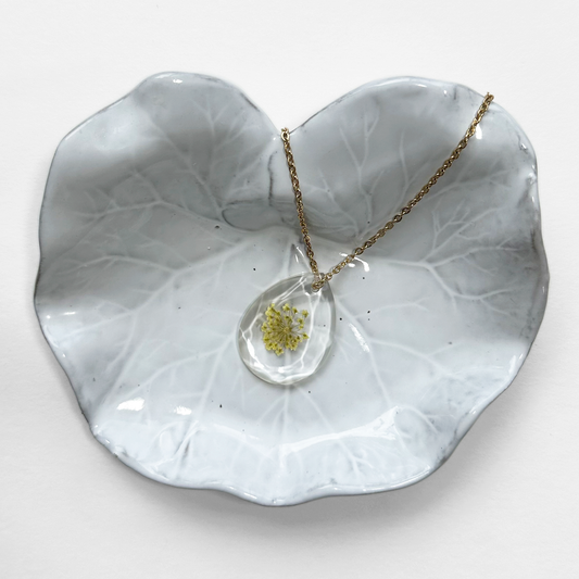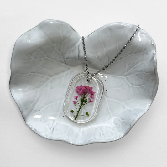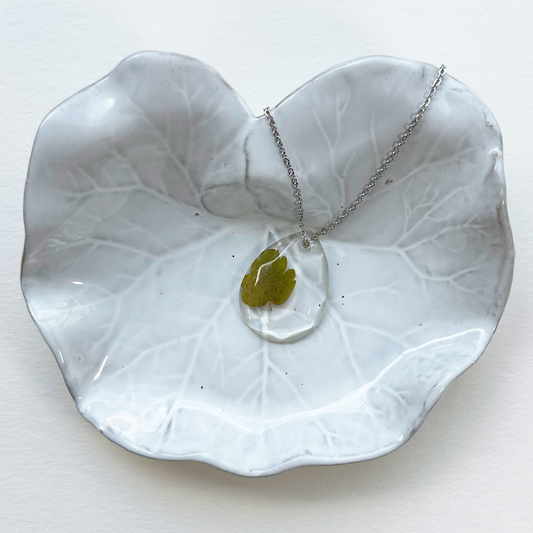 Collares únicos, elaborados con plantas y flores prensadas, encapsuladas en resina.